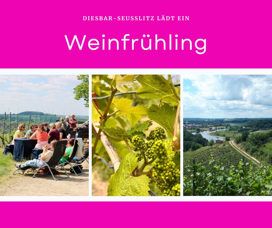 Zu Himmelfahrt lädt der Weinfrühling in Diesbar-Seußlitz zum entspannten Schlendern durch den idyllischen Weinort ein – genießen Sie den Blick auf die Elbe bei herzlicher Einkehr und erleben Sie die Weinberge hautnah zwischen den Rebzeilen mit den heimischen Winzern.