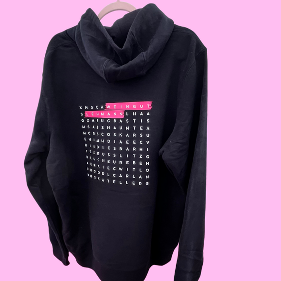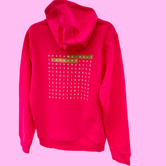 Weich, hochwertig und mit einem Augenzwinkern für alle, die wissen, was „Lehmann“ bedeutet. Auf dem Rücken sind 13 Begriffe versteckt, die nur Insider rund ums Weingut erkennen.